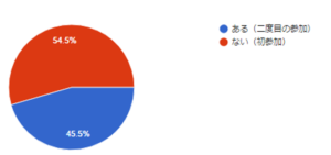 今回は初参加が半分を締めたようです。リピーターが半数います。